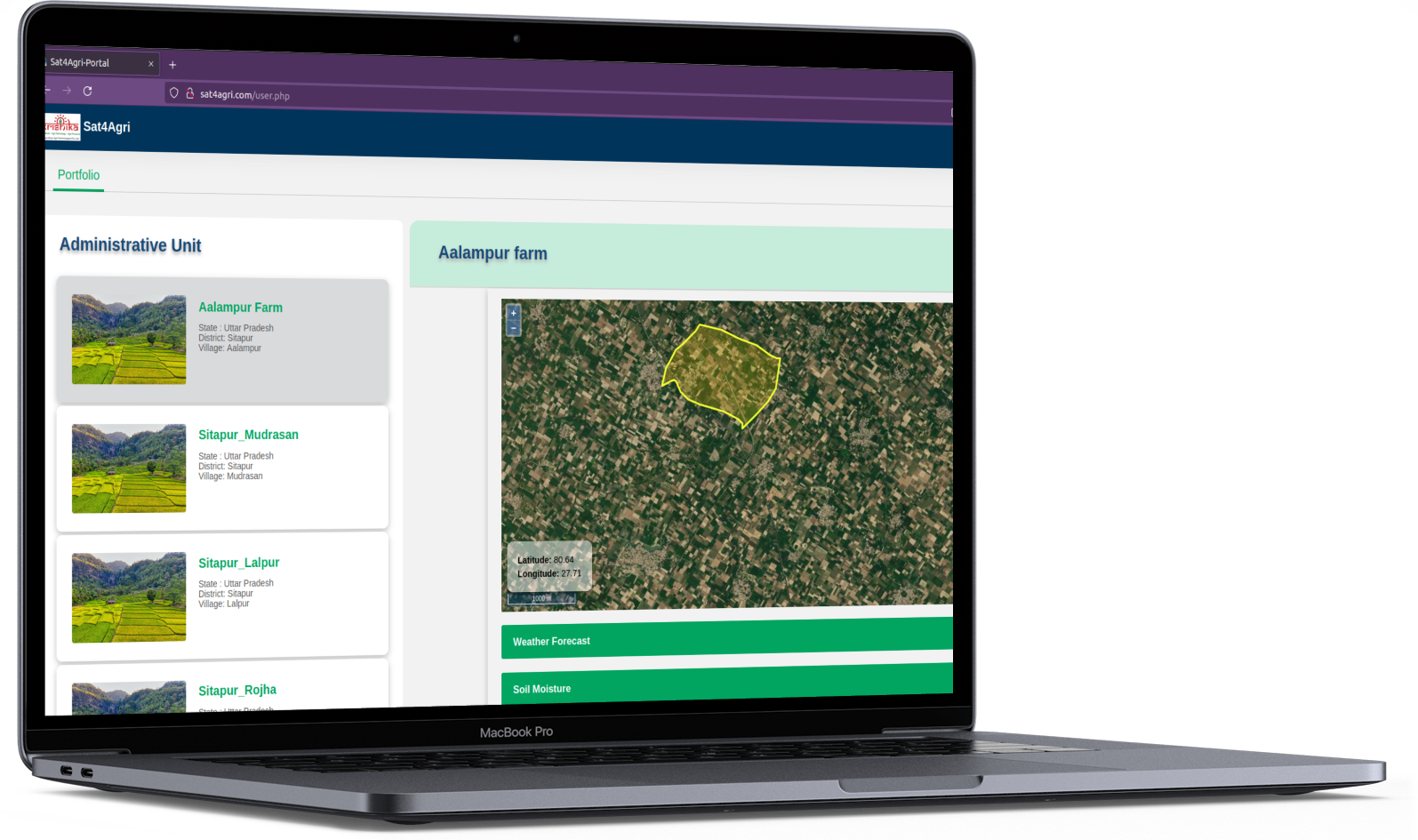 With multi-satellite data, we are able to provide what are all the crops grown in a particular area/ village/ taluk or at the regional level, the amount of farmland that has been planted with a crop, soil moisture content etc of different farms or at the regional level.