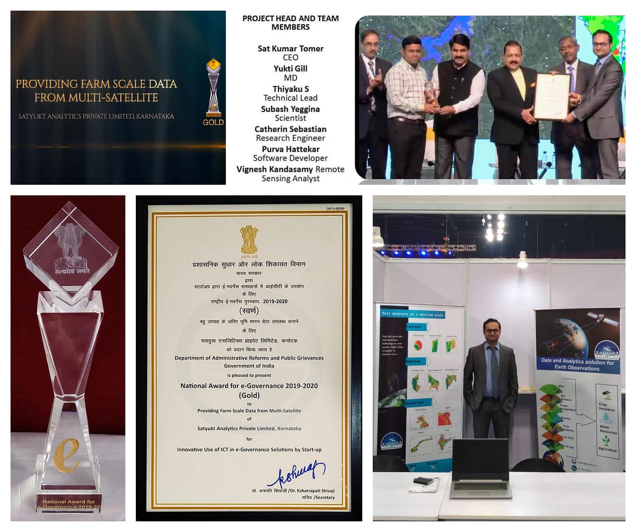 The 23rd National Conference on e-Governance was conducted on February 7-8, 2020 at Mumbai. Satyukt bagged the “Gold” award in Category V – “Innovation Use of ICT in e-governance solutions by startups (startup as defined by Department of Industrial Policy and Promotion (DIPP) government of India) for providing farm-scale data from multi satellites. Several officials from the Central government and state governments, including IT secretaries and IT Directors were part of the conference. Maharashtra Tourism minister Aditya Thackeray was the chief guest. Maharashtra Industries and Mining and Marathi language Minister Subhash Desai presided the function. Union Minister of State for Personnel, Public Grievances and Pensions Dr Jitendra Singh and Maharashtra IT Minister Satej D Patil were the guests of honour.