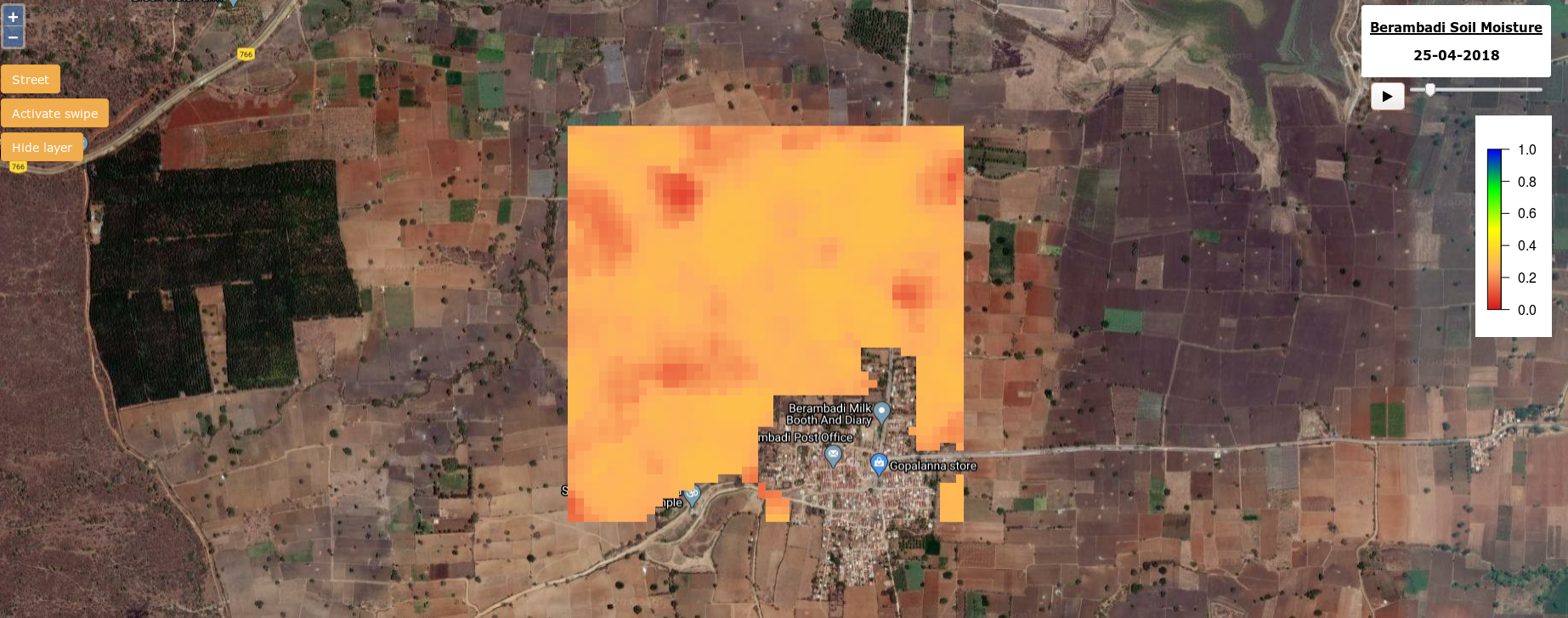 Soil moisture is the important parameter for the growth of the plant. Both the excessive and limited soil moisture can impact the health of the crop. Monitoring the soil moisture can help in optimal utilization of the water. Satyukt monitors soil moisture at high spatio-temporal resolution using the multi-satellite data.